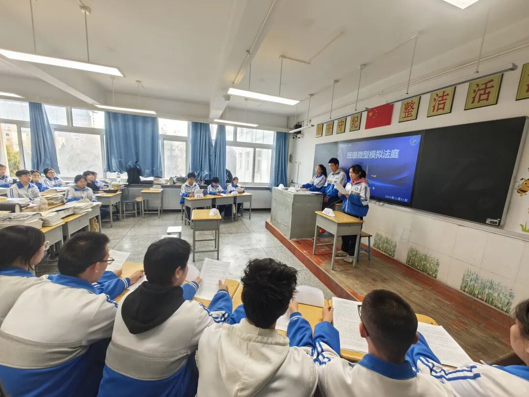 时隔两日,金昌中院民一庭干警再次走进金昌市第一中学,观摩指导了学校首次举办的“班级模拟法庭”活动。此次活动创新性地将模拟法庭下沉至各个班级,实现了法治教育从“大讲堂”到“小课堂”的转变。在各个班级教室里,学生们分别扮演审判长、公诉人、辩护人等角色,亲身体验庭审全过程。民一庭三名干警深入其中三个班级,对模拟法庭进行了专业点评,既肯定了学生们的出色表现,也指出了需要改进的细节,让在场师生受益匪浅。