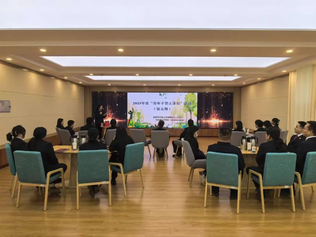 12月8日,金昌中院2025年第五期“青年干警上讲台”活动在院文化中心开讲。参加了基层挂职、比武竞赛、市委巡察和入职培训的4名干警上讲台分享感悟、交流经验。20余名青年干警参加。