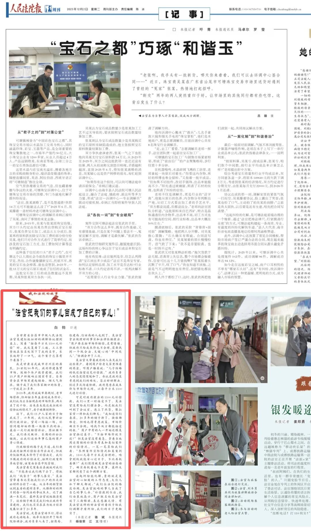 这起纠纷能化解,靠的就是吴法官耐心细致的工作态度,大伙儿私下聊天都说:“我们往法院的路没白跑,吴法官把咱的事儿当成了自己的事儿办。”补偿款到位后,我们由衷地高兴,商户联名向吴法官送了三面锦旗,表达感激之情。有吴法官这样的好法官耐着性子给我们调解矛盾纠纷,我们的日子更踏实了。
