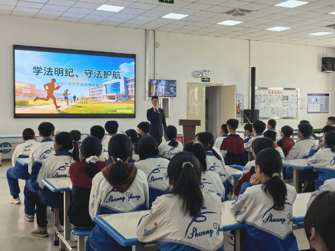 在双湾中学,法治副校长以“学法明纪 守法护航”为主题,开展专题法治宣讲。用同学们能听懂的语言,层层剖析欺凌行为的成因与危害,清晰解读每一种欺凌行为对应的法律责任,彻底击碎“年龄小就可以免责”的错误认知。