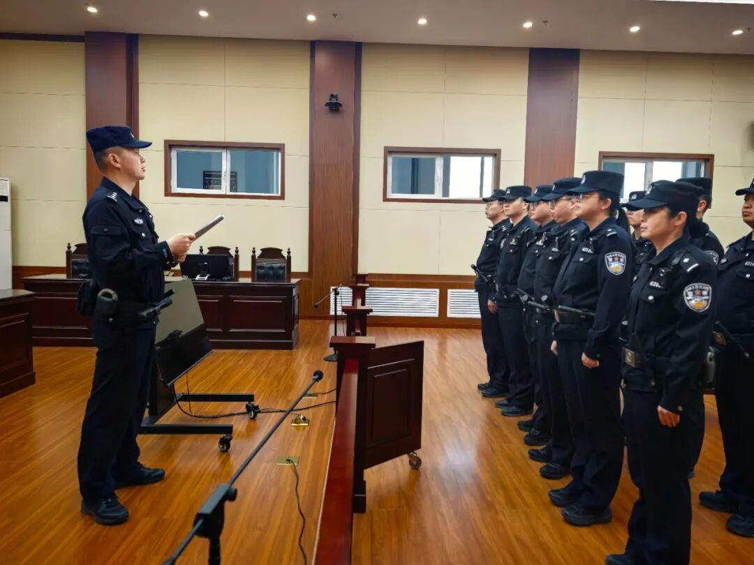演练严格依照《人民法院司法警察刑事审判警务保障工作规则》相关要求,以“实战、实用、实效”为原则,重点围绕被告人押解、看管、值庭等工作细节,以警械具规范使用、队伍协同配合、展示出示证据等方面为内容开展演练。演练前,支队结合具体工作实际,对警力分配、岗位职责、协同配合进行了预先安排部署,确保演练贴近实际、取得实效。演练中,全体警员警容严整、分工协作,以饱满的热情和严密的配合高质量完成演练,充分展现了队伍过硬的业务能力和严谨的纪律作风。