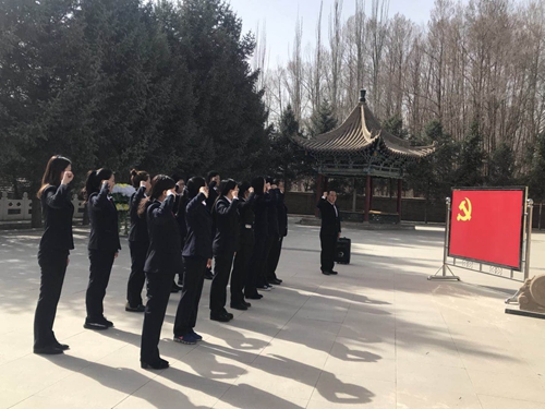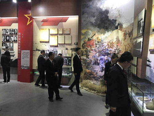 革命烈士纪念碑前,干警们整齐列队,敬献了花圈和鲜花,三鞠躬并一起默哀。之后,重温了入党誓词。在讲解员引领下,干警们参观了西路军纪念馆。